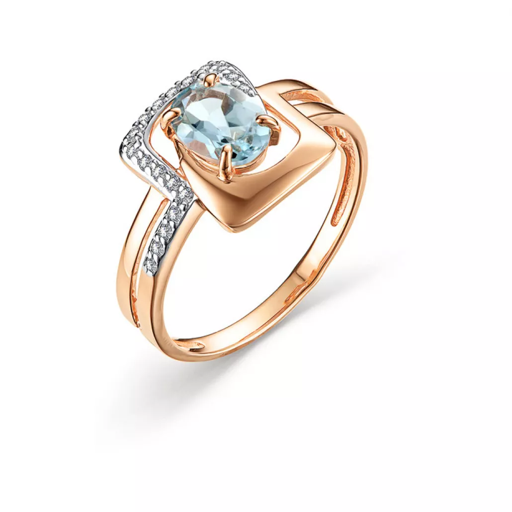 р. 19, Золото 585, 1 Лондон топаз Овал 7х5 - 0,867 ct.; 19 Фианит Круг 1,0 - 0,179 ct.