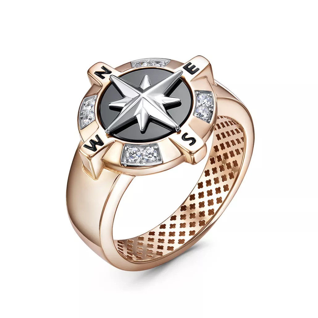 - Кольцо с ониксом и фианитом из золота