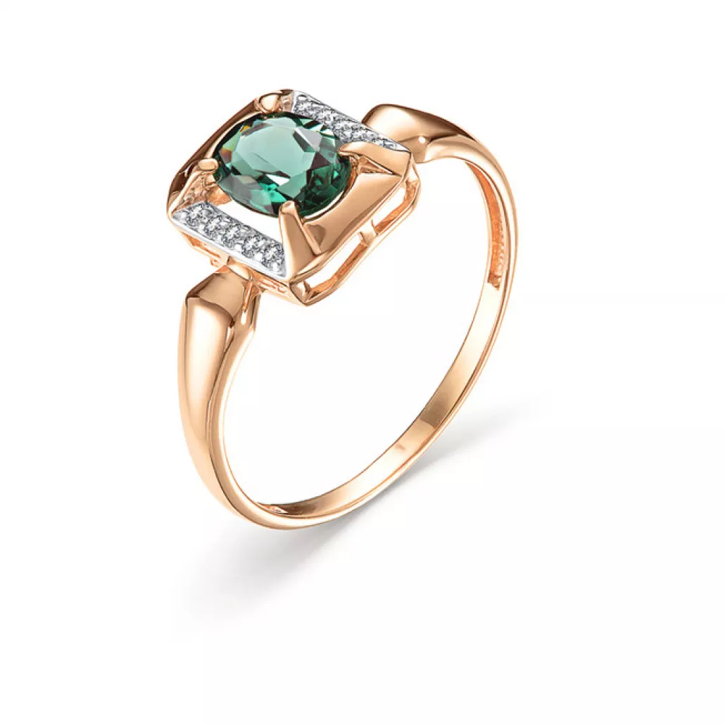 - Кольцо с изумрудом и фианитом из золота