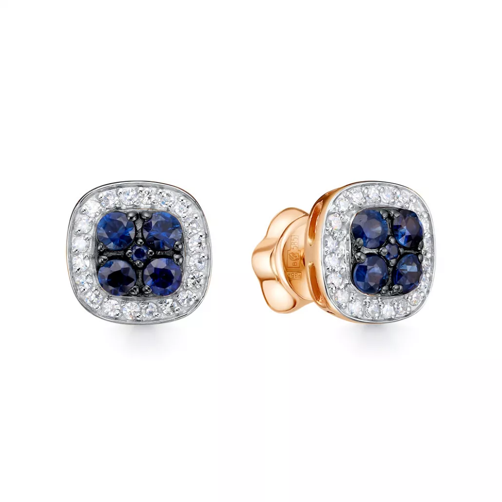 Пусеты с бриллиантами с сапфиром из золота
