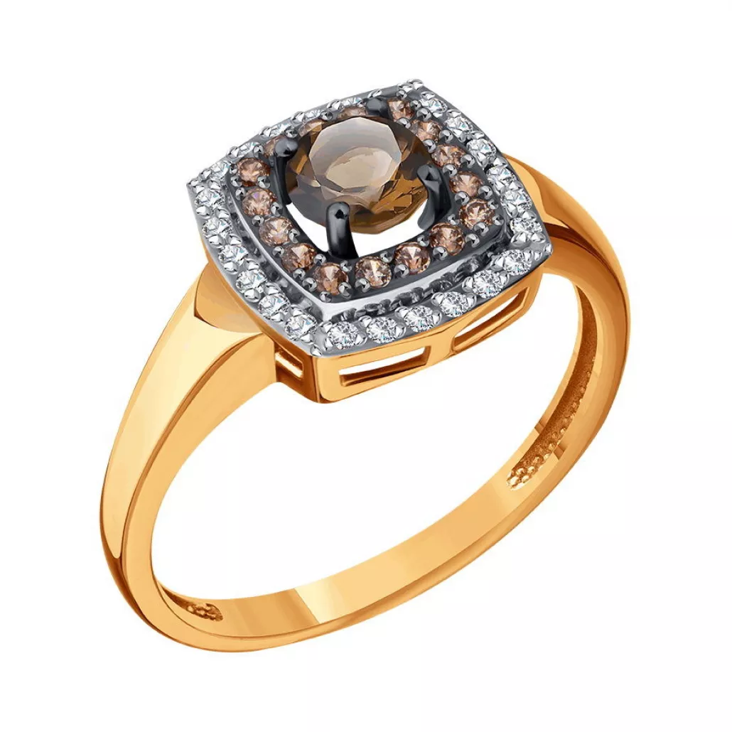 - Кольцо с раухтопазом и фианитом из золота