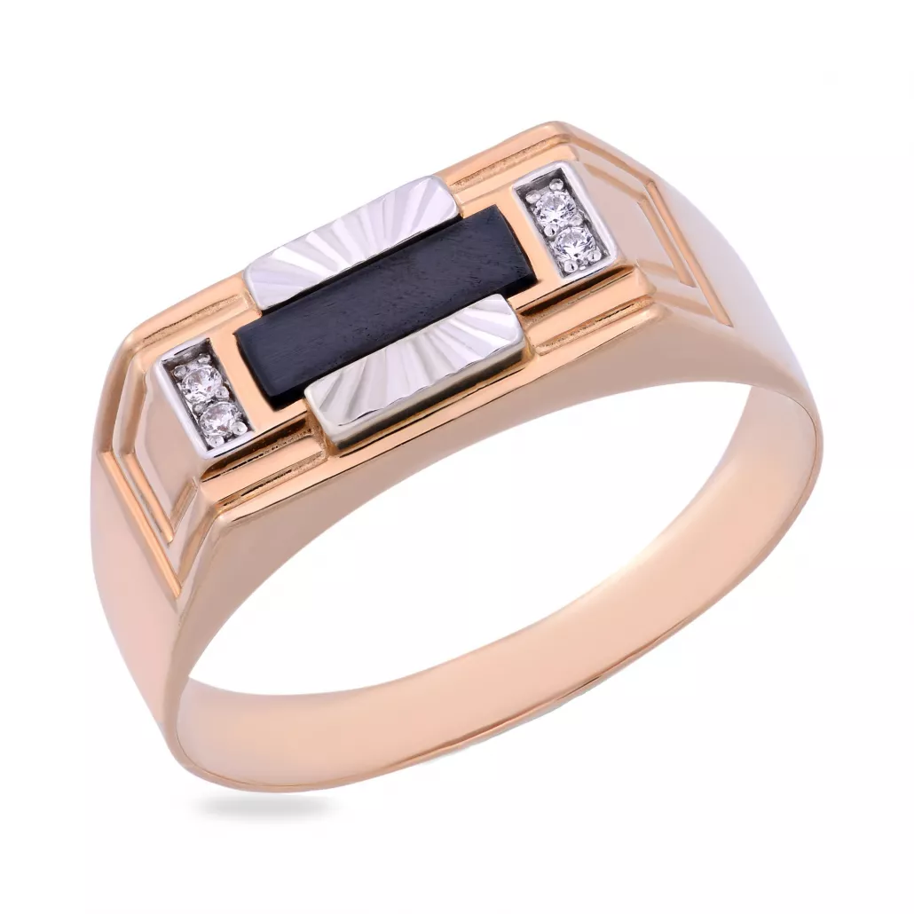 Кольцо-печатка с фианитом из золота