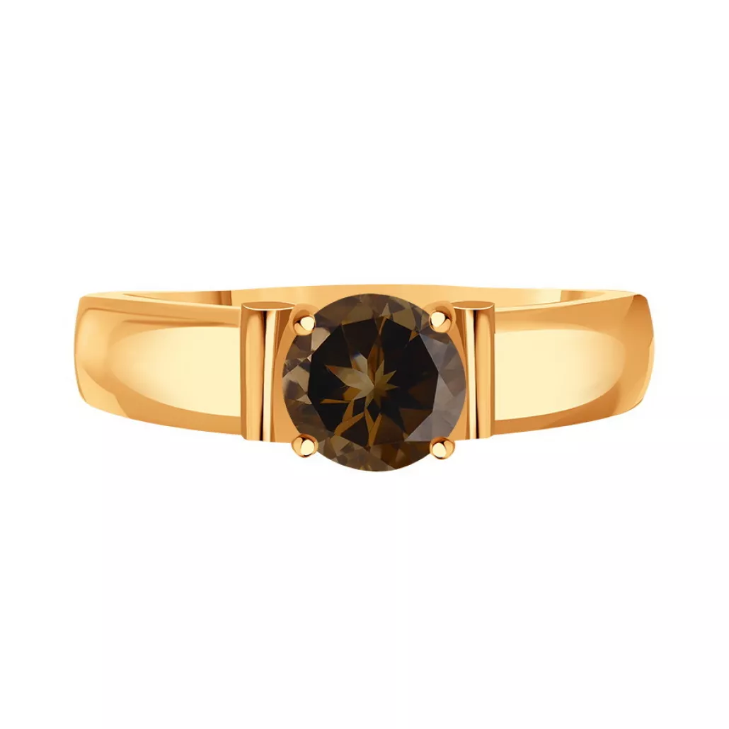 Кольцо с раухтопазом и фианитом из золота