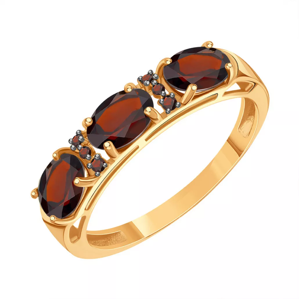 Кольцо с гранатом и фианитом из золота